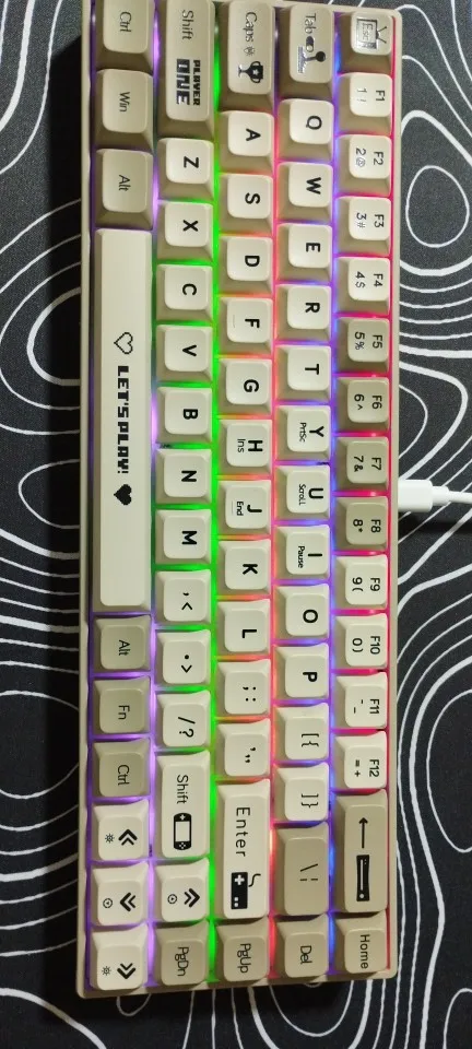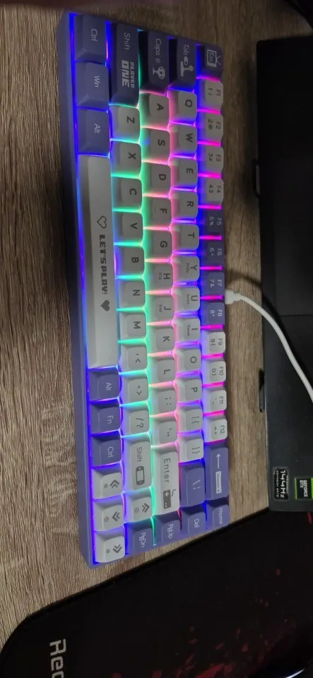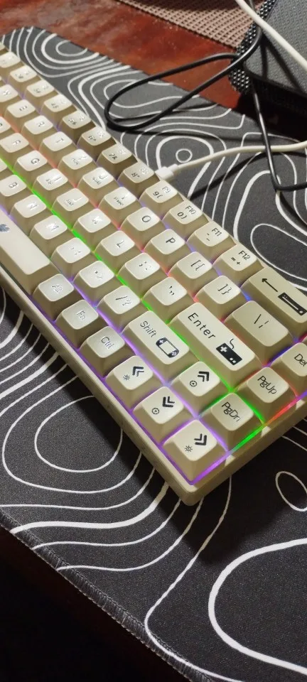 It arrived in good condition. The sound of pressing the keycaps is almost silent and the lights are great.