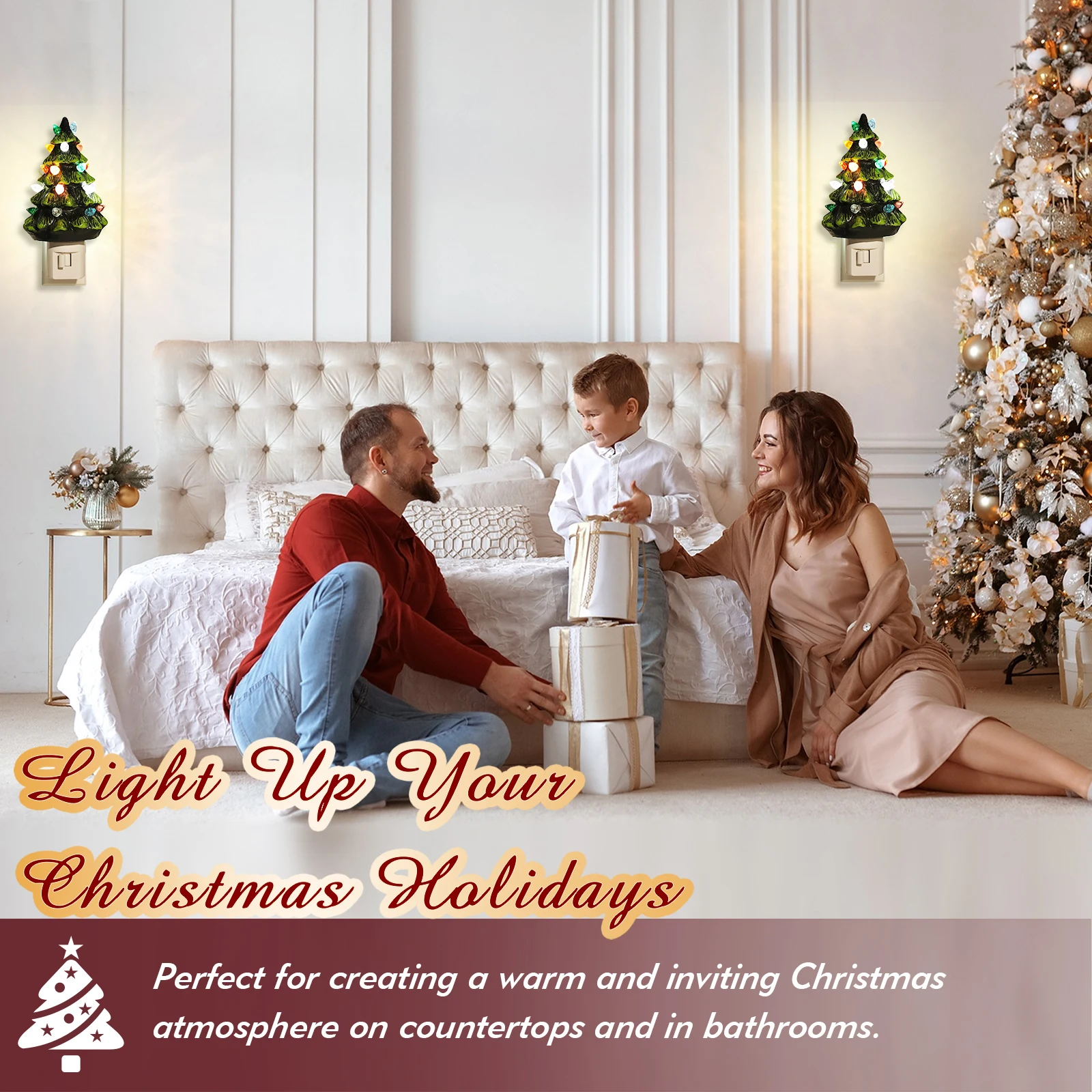 1. Charming Resin Design: Hand-painted with a smooth finish, this Christmas tree night light is sturdy, safe, and long-lasting.