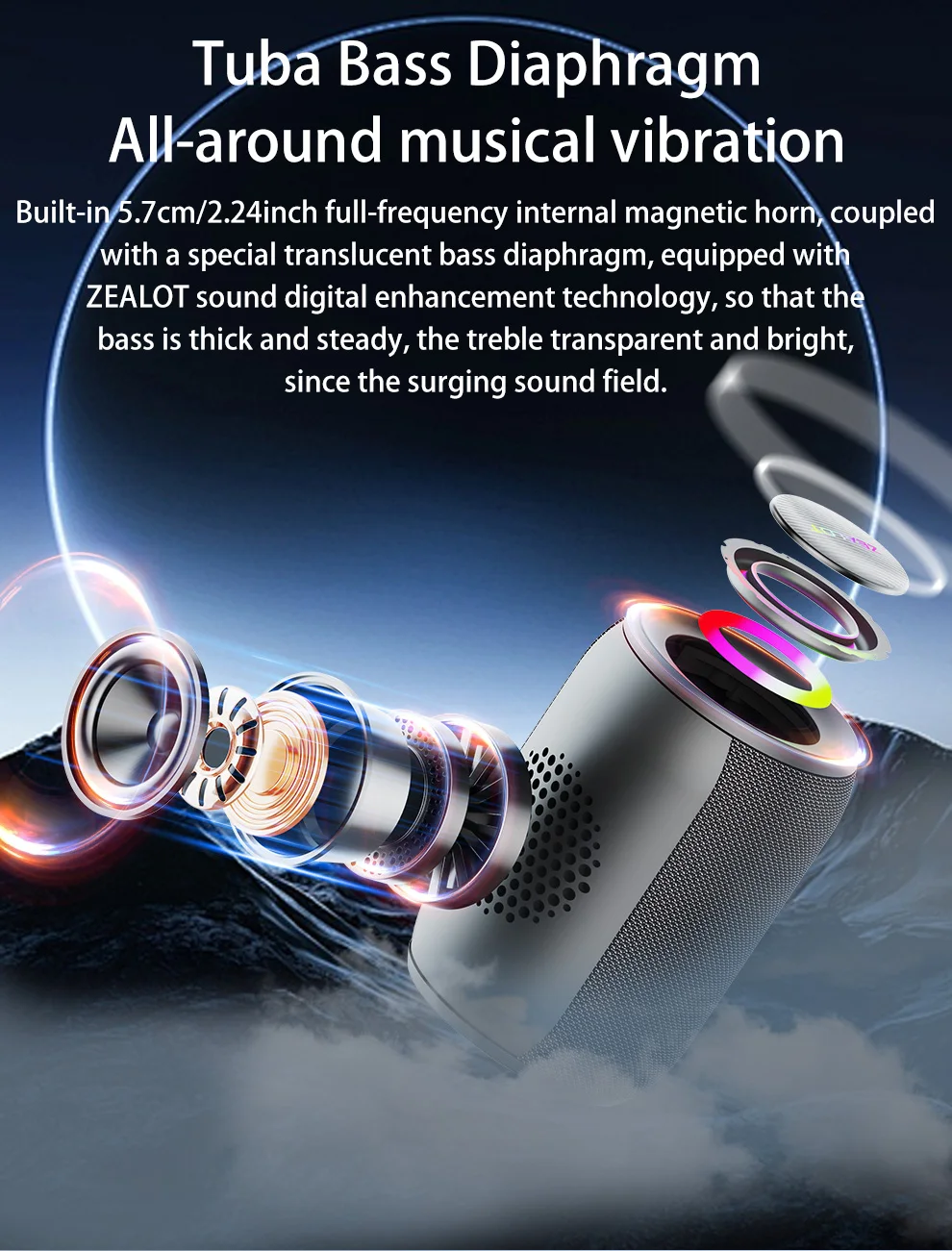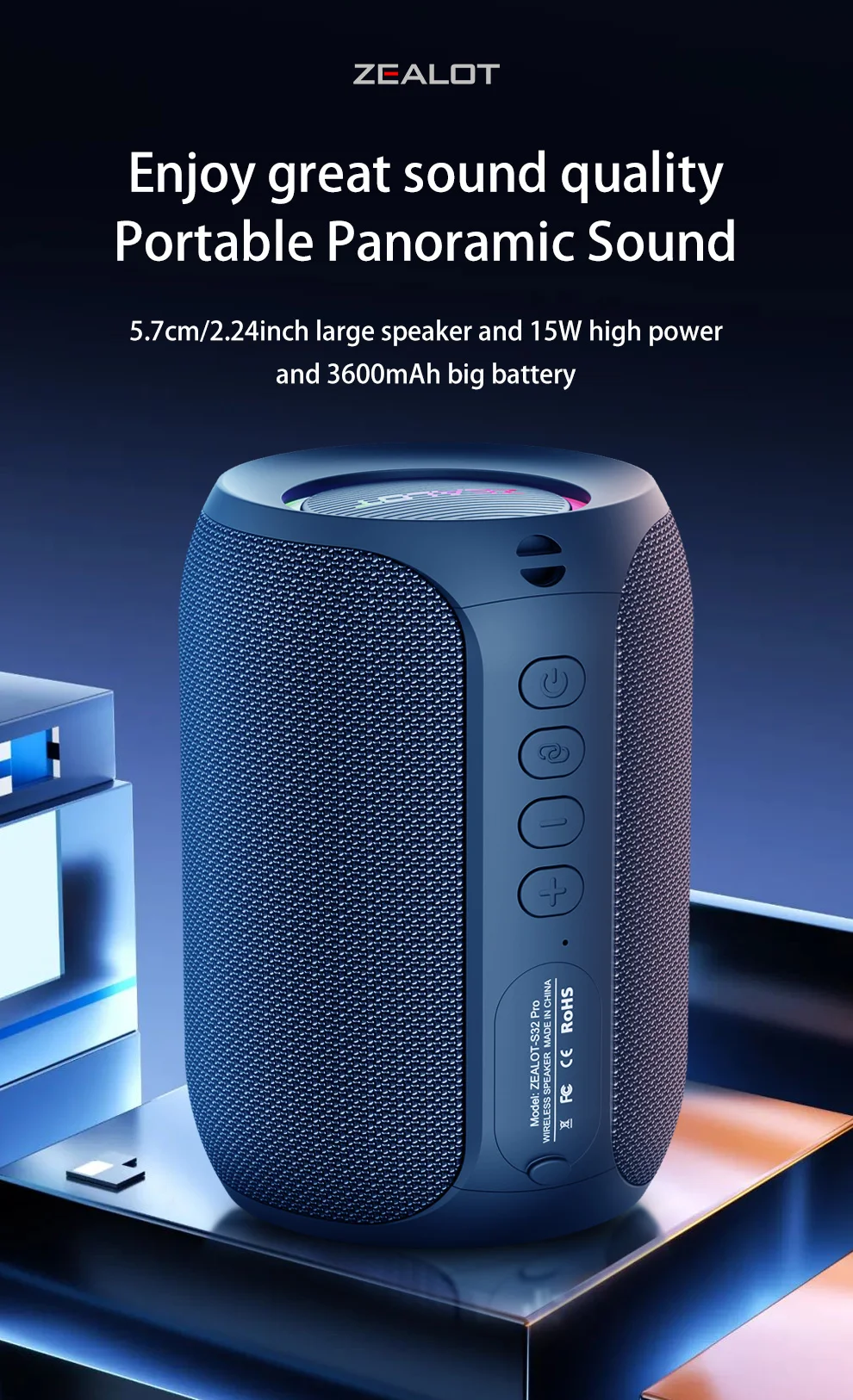ZEALOT S32 Pro 4-Channel Portable Bluetooth Speaker – 3600mAh Battery, Hi-Res Sound, Waterproof