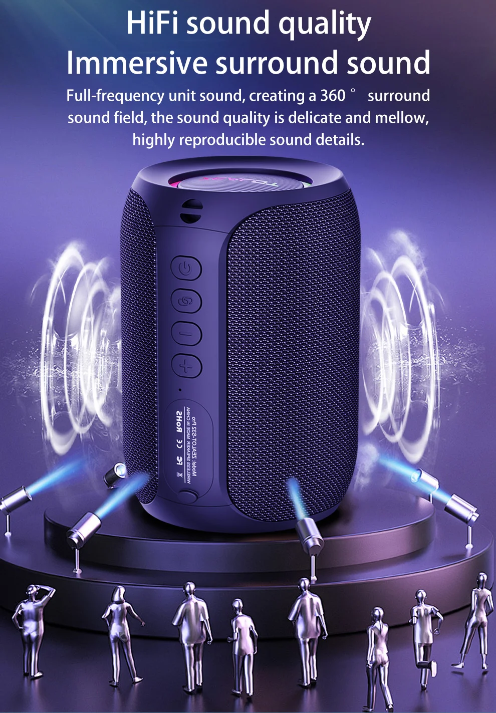 Portable and rechargeable, this speaker provides hours of continuous playback via battery or USB power. Perfect for home, travel, or outdoor use.